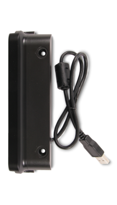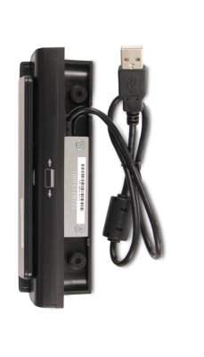 El lector de banda magnética Elo (MSR) para la computadora de pantalla táctil de la serie E facilita la recolección de datos de la tarjeta. El MSR es fácil de montar y alimentado a través del puerto USB. Con un golpe de la tarjeta, puede capturar hasta tres pistas de datos de forma rápida y precisa.