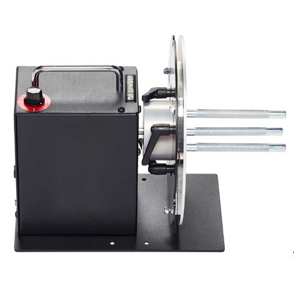 La Rebobinadora CAT-3-W10 cuenta con un soporte de núcleo de estilo de aleta ancho y dos bridas de etiqueta.